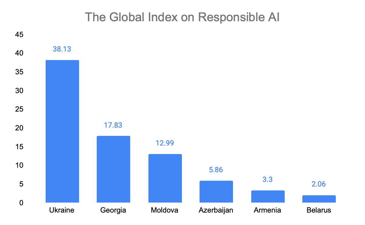 In the Global Index on Responsible AI Georgia scored 17.83 out of 100, ranking 60th out of 138 countries.