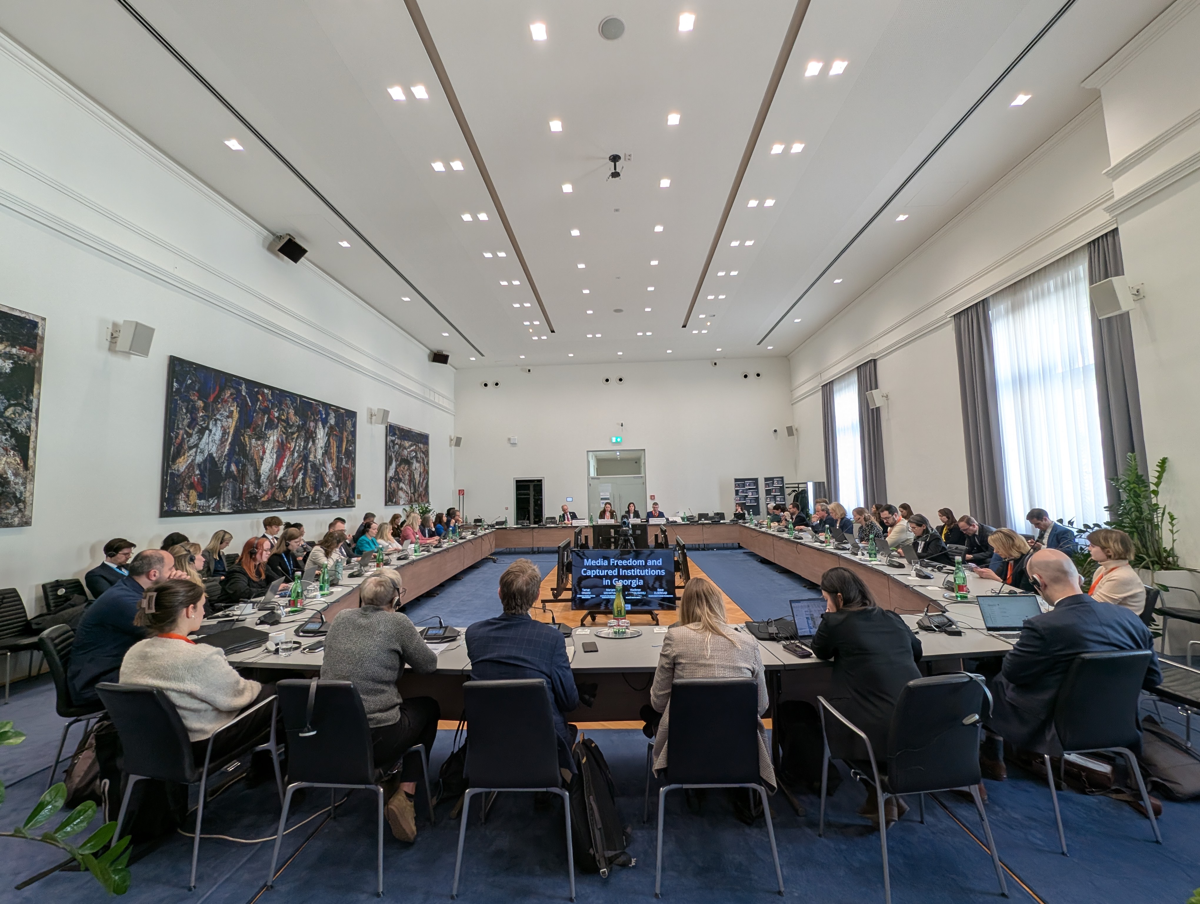 During the meeting, speakers discussed the alarming situation regarding media freedom in Georgia, the forms of systemic repression used by the "Georgian Dream" against critical media, and circumstances that reveal the scale of state capture.