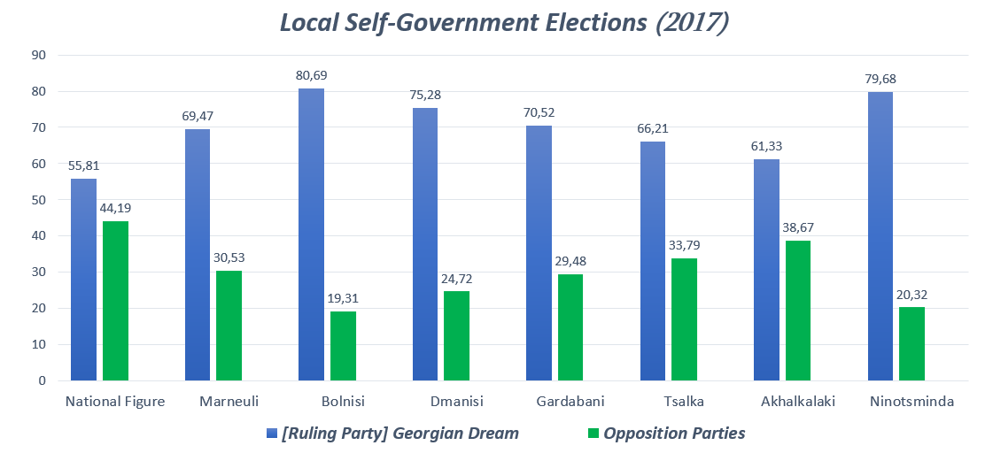 Mayoral candidates of "Georgian Dream" won the elections in the Kvemo Kartli and Samtskhe-Javakheti constituencies. Unlike the 2014 local government elections, the chances of victory by opposition parties or independent candidates at the level of administrative units were quite low. It can be said that the influence of the ruling party was stronger compared to 2014.