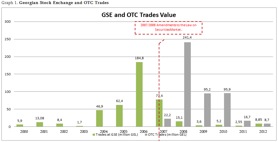 Moreover, by lobbying from the biggest banking group linked to the previous government’s two prime ministers, securities market legislation was distorted, which subsequently led to discretization and destruction of the Georgian securities market. More specifically:
