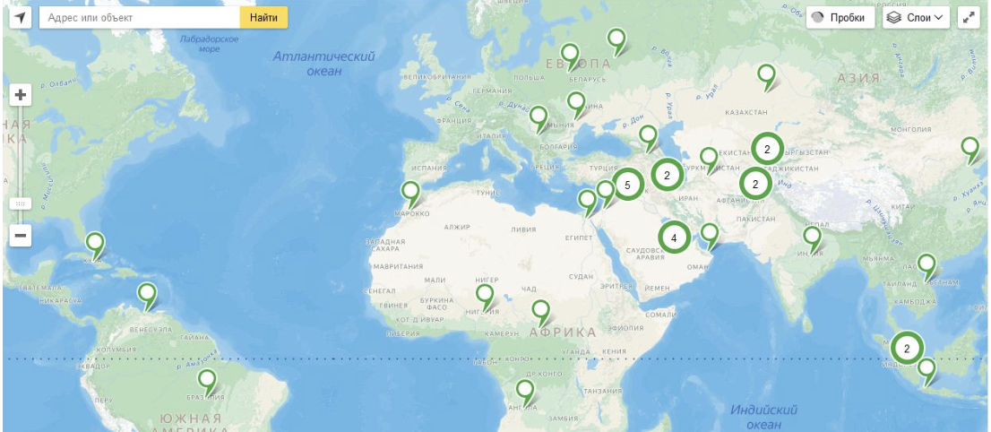 ვებგვერდზე გამოქვეყნებული რუკის მიხედვით, პალატას საქმიანი საბჭოები აქვს მთელი მსოფლიოს მასშტაბით, მხოლოდ იმ ქვეყნებში, რომლებიც არ არიან “არამეგობრული” ქვეყნების სიაში, მათ შორის: სირიაში, ირანში, ბელარუსში, ვენესუელაში და ა.შ.