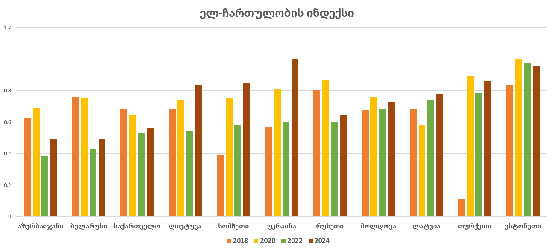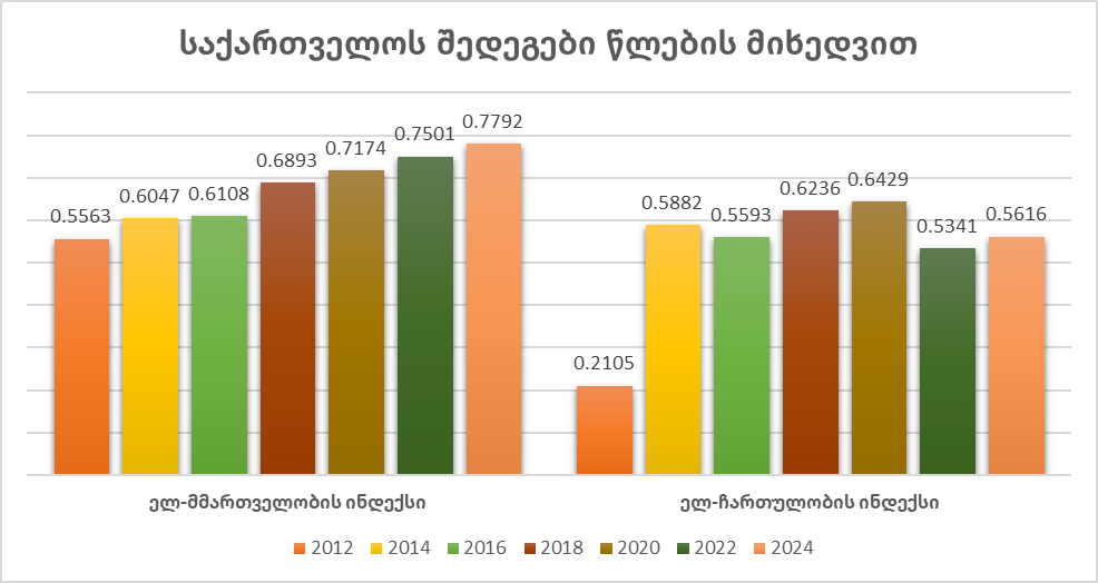 წლევანდელი შედეგებით, ელ-მმართველობის კომპონენტში საქართველო მხოლოდ მოლდოვას, აზერბაიჯანს და ბელარუსს უსწრებს, ხოლო ელ-ჩართულობის ქულებით, მხოლოდ ბელარუსისა და აზერბაიჯანის შედეგებს აღემატება.
