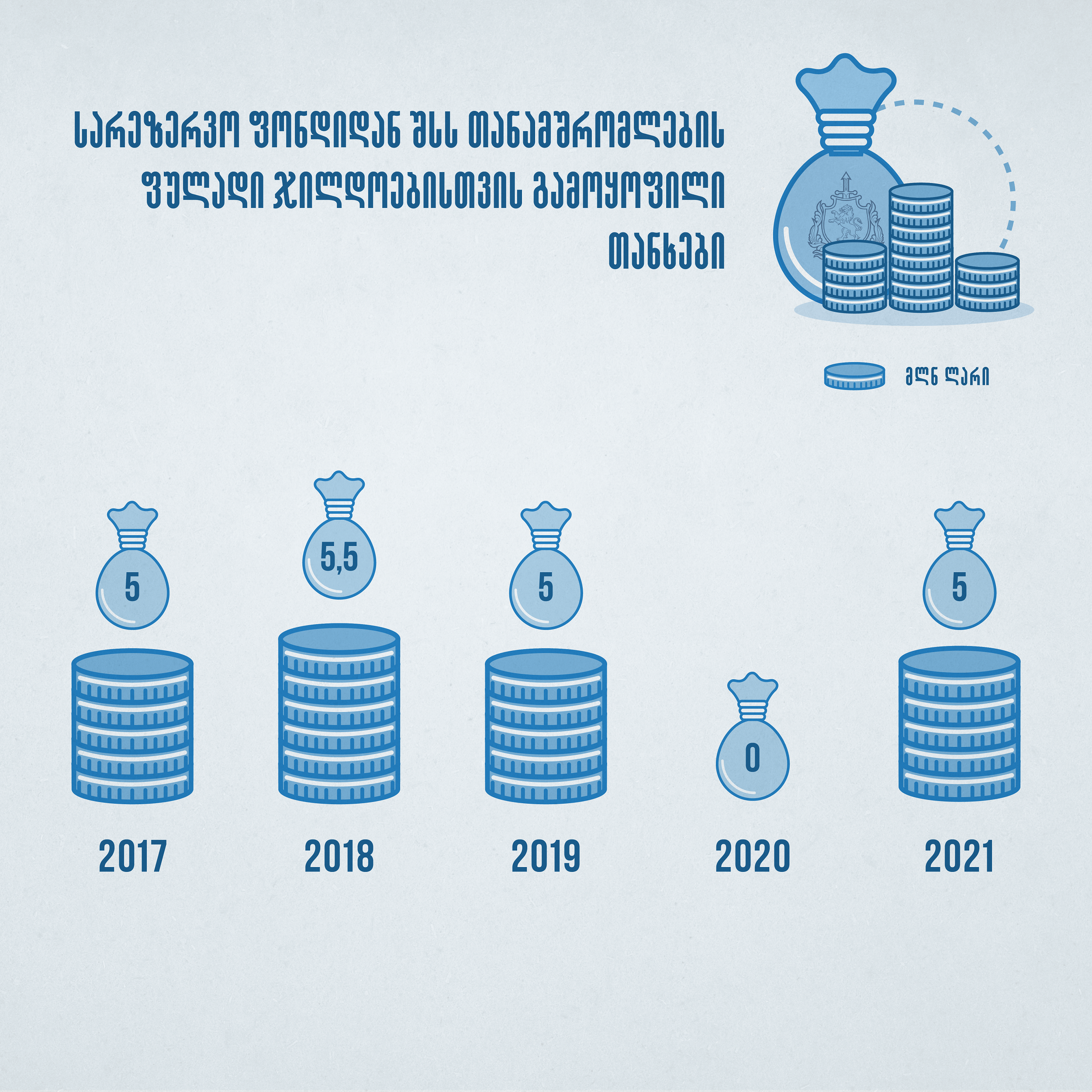საქართველოს საგარეო სამინისტროსთვის 2021 წლის სარეზერვო ფონდიდან 482,000 ლარზე მეტი გამოიყო, საიდანაც 200,000 ლარი ისრაელის სახელმწიფოში ქართული დიასპორისა და საქართველოს საელჩოს საჭიროებისათვის განკუთვნილ შენობა-ნაგებობებთან დაკავშირებული 3 შენობა-ნაგებობის დავალიანების დაფარვას ითვალისწინებდა, ხოლო დარჩენილი 282,000 ლარი - საიინფორმაციო პორტალ EURACTIV.COM-ის მომსახურების შესყიდვას.