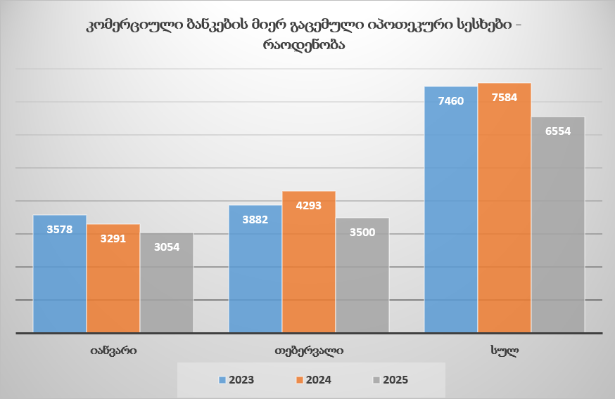 -კომერციული ბანკების მიერ გაცემული იპოთეკური სესხების რაოდენობა 2025 წლის პირველ ორ თვეში 13.6%-ით შემცირდა.