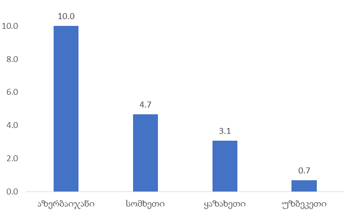 - აზერბაიჯანთან 9.64%-დან 19.48%-მდე ($342.5 მილიონით, $83.4 მილიონიდან $425.9 მილიონამდე)